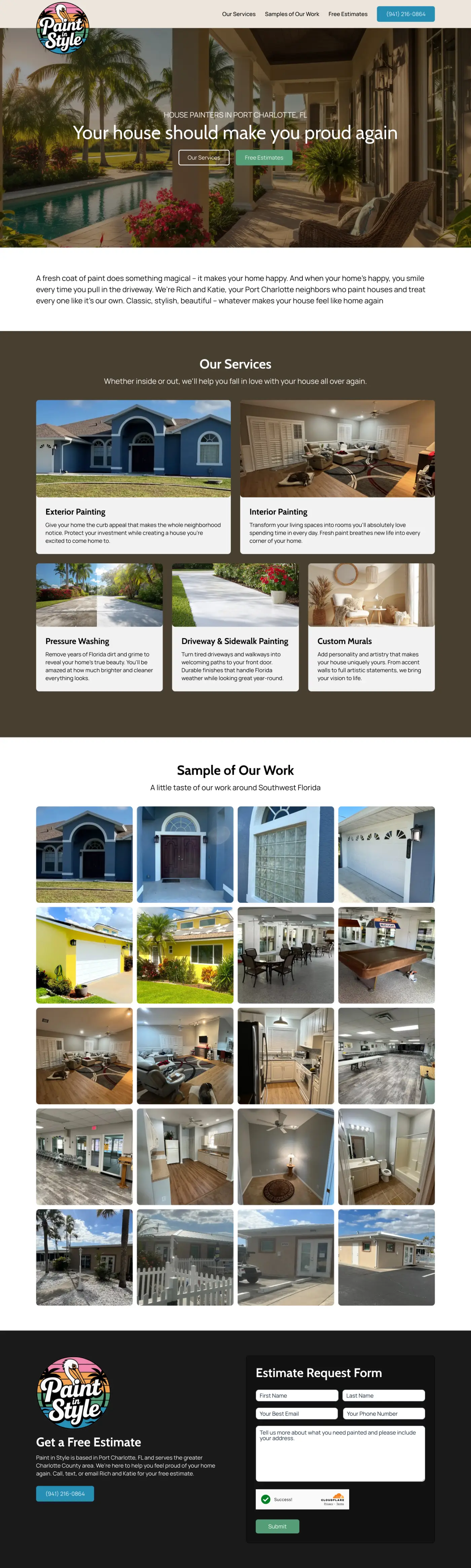 Paint in Style is a residential painting company based in Port Charlotte, Florida, run by husband-and-wife team Rich and Katie. As a new local business serving Southwest Florida, they needed to establish their brand presence and communicate their personal, neighbor-to-neighbor approach to house painting.